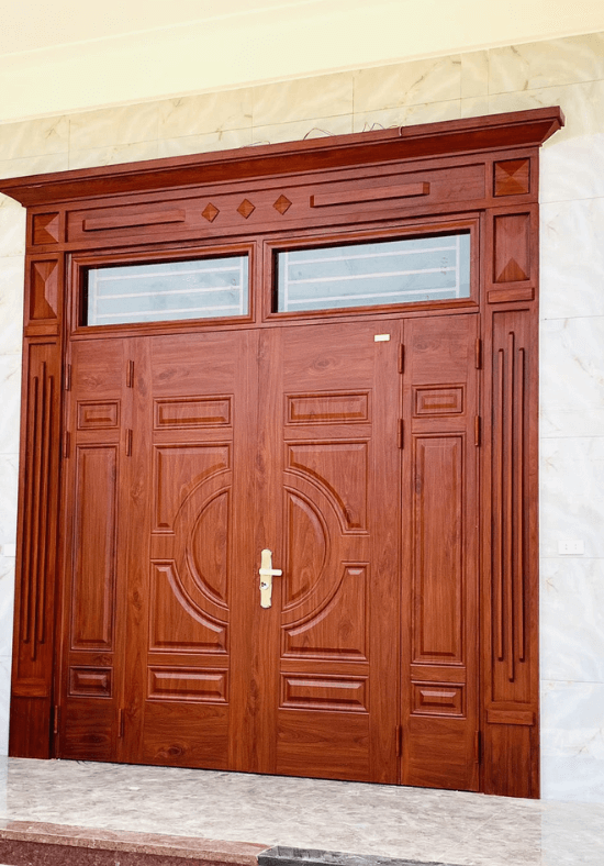 Cửa thép vân gỗ có phào đình 1 cánh lệch HME6005K